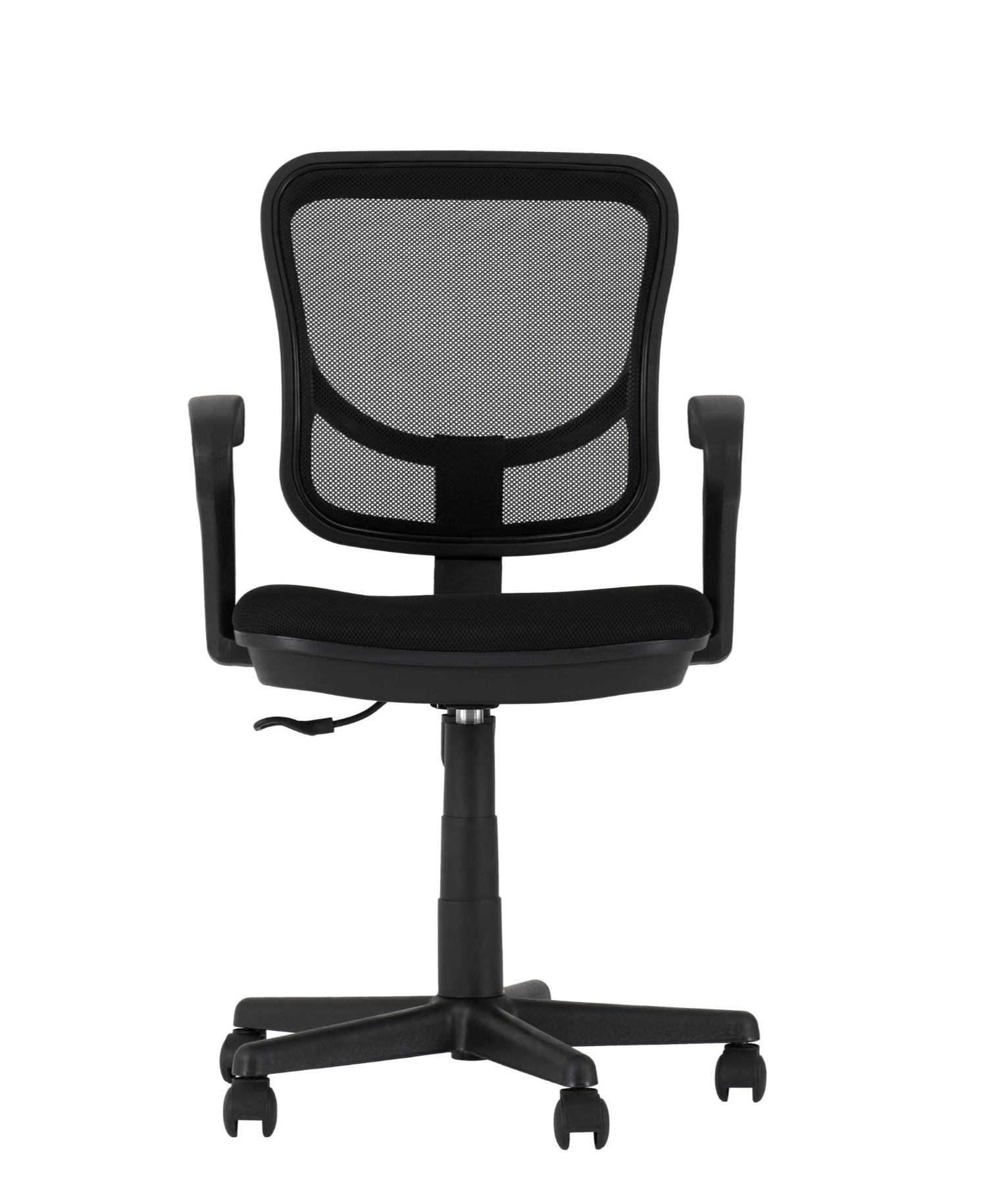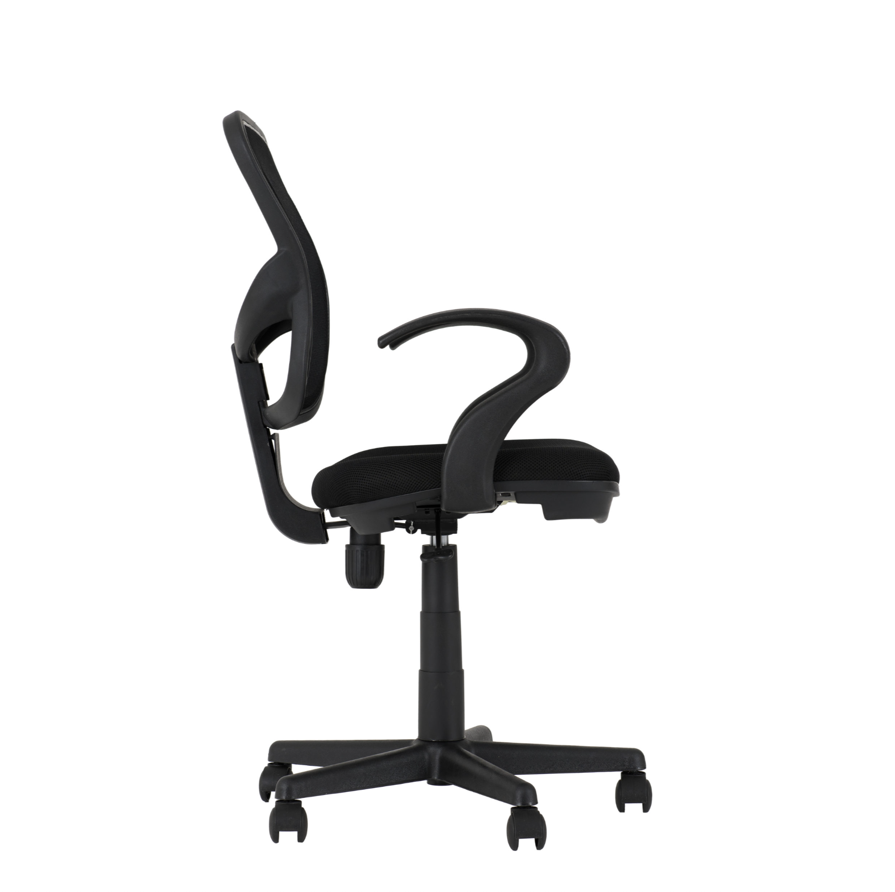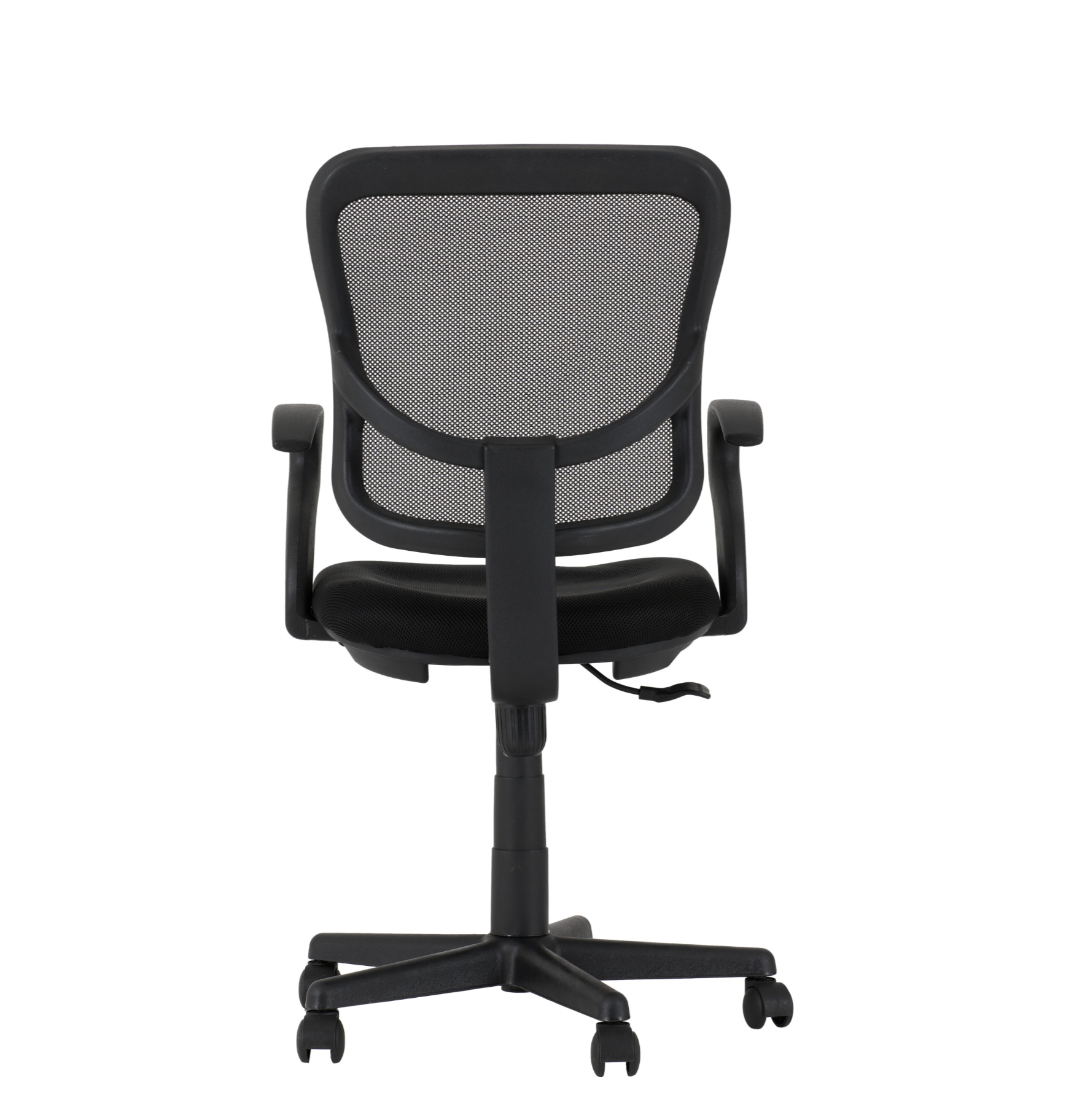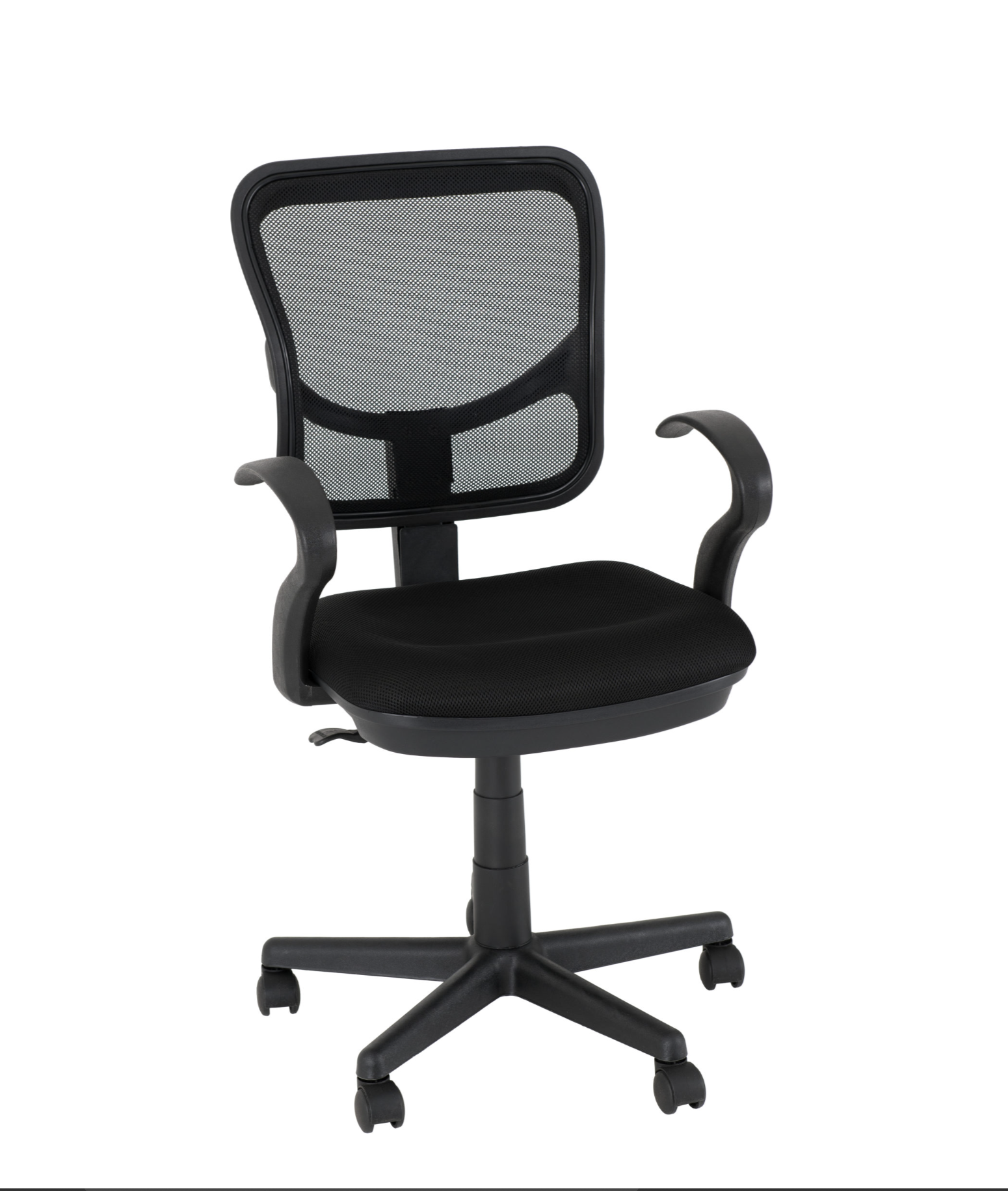 Featuring a swivel design, this mesh-back chair with a fabric seat pad and 2 arm-rest.